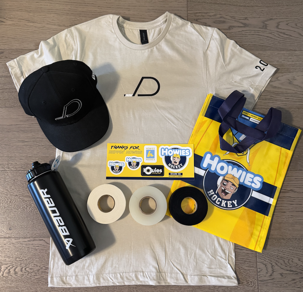includes jersey, autographed/signed 8x10 personalized photo, hockey gift bag, electrolytes, custom JD shirt